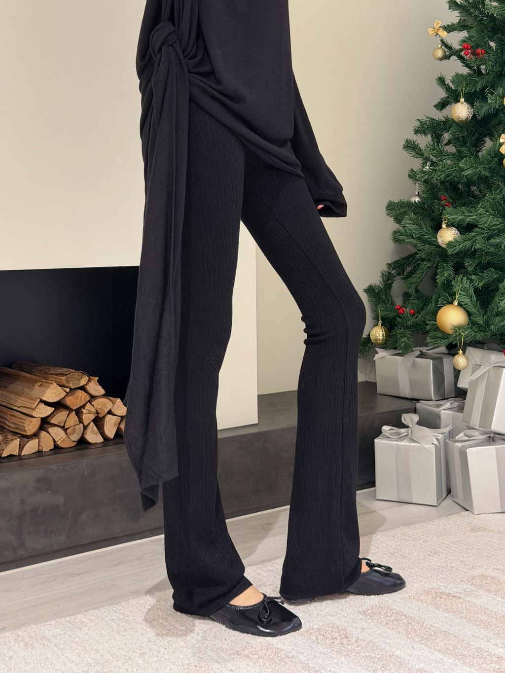 簡約顯瘦綁帶套裝-黑