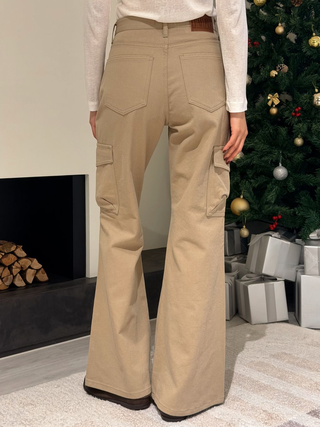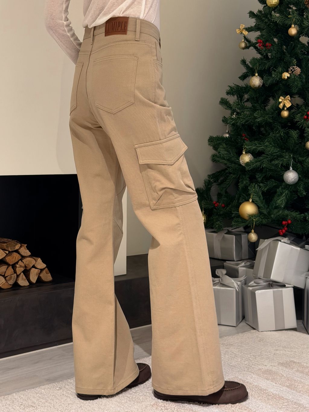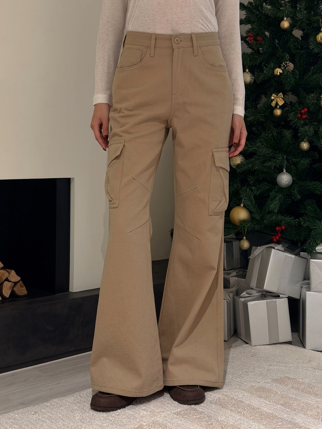 卡其高腰小喇叭工裝褲