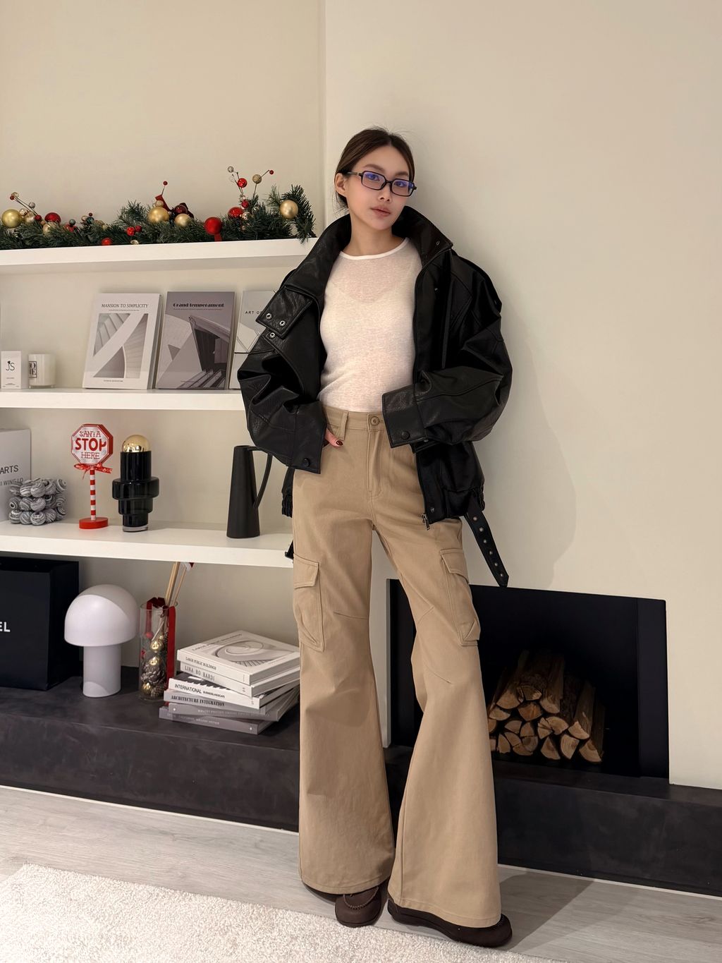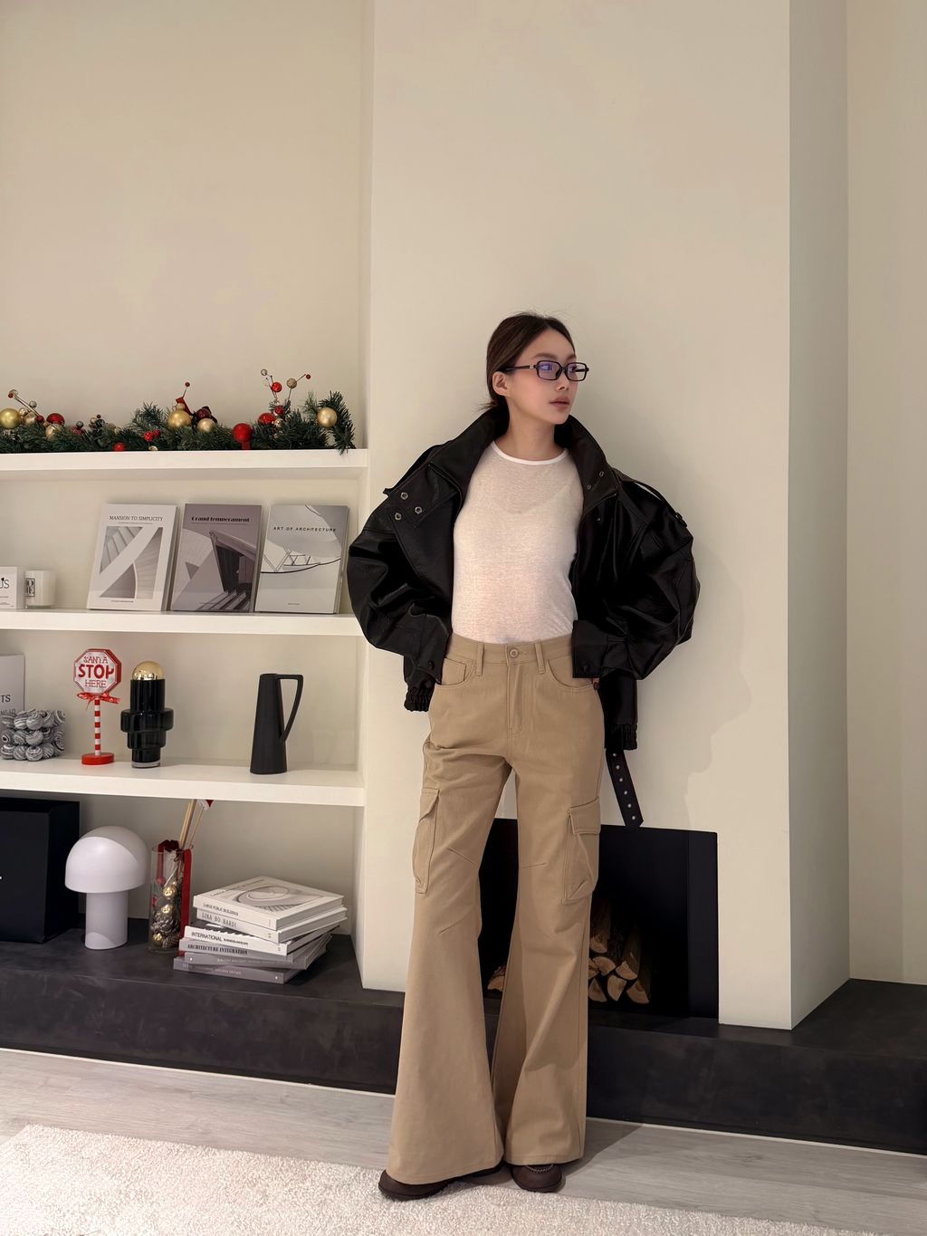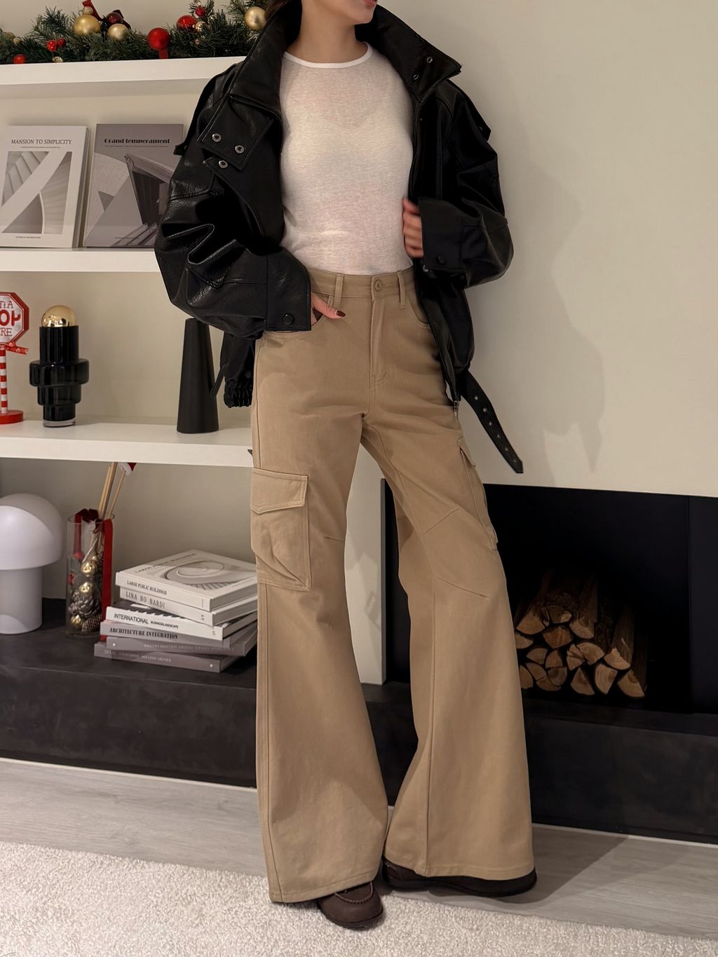 卡其高腰小喇叭工裝褲