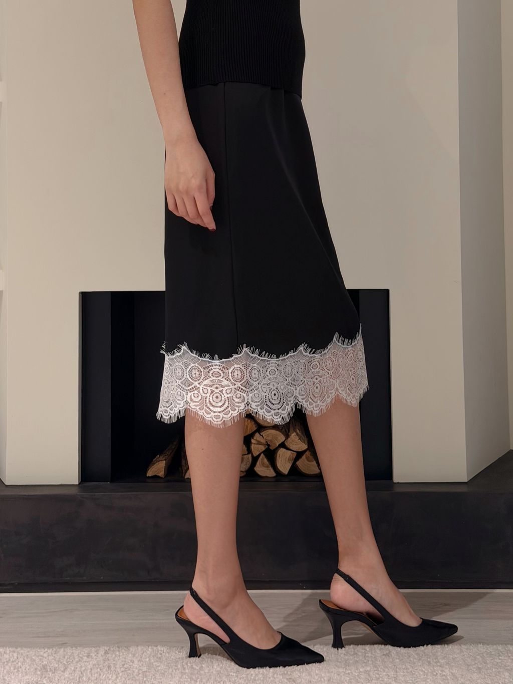 • 裙襬蕾絲拼接設計,細節精緻不浮誇