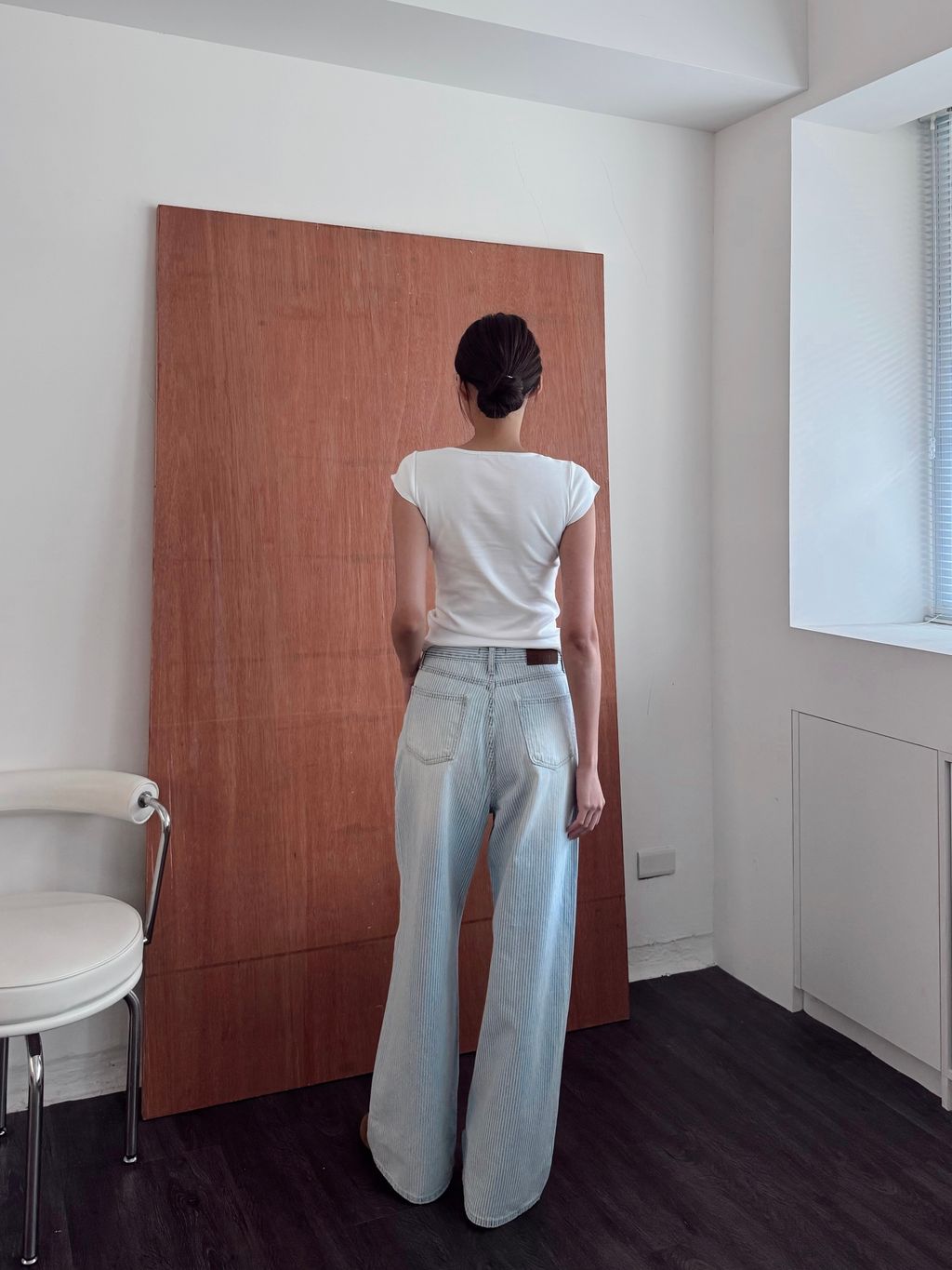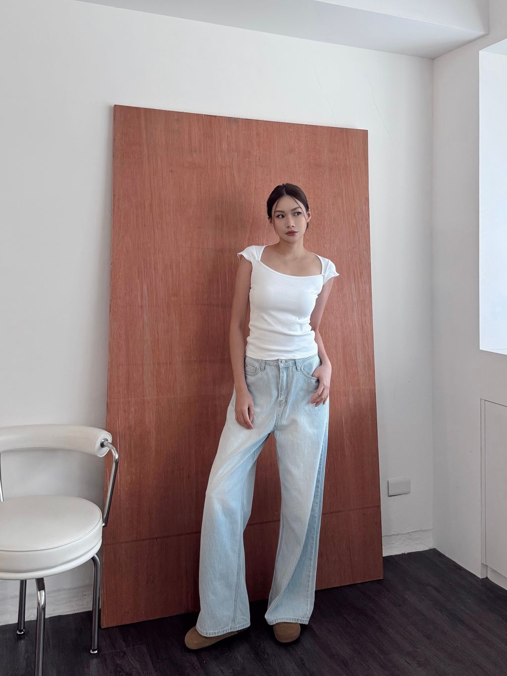 現貨- 方領修身棉質短袖上衣-白